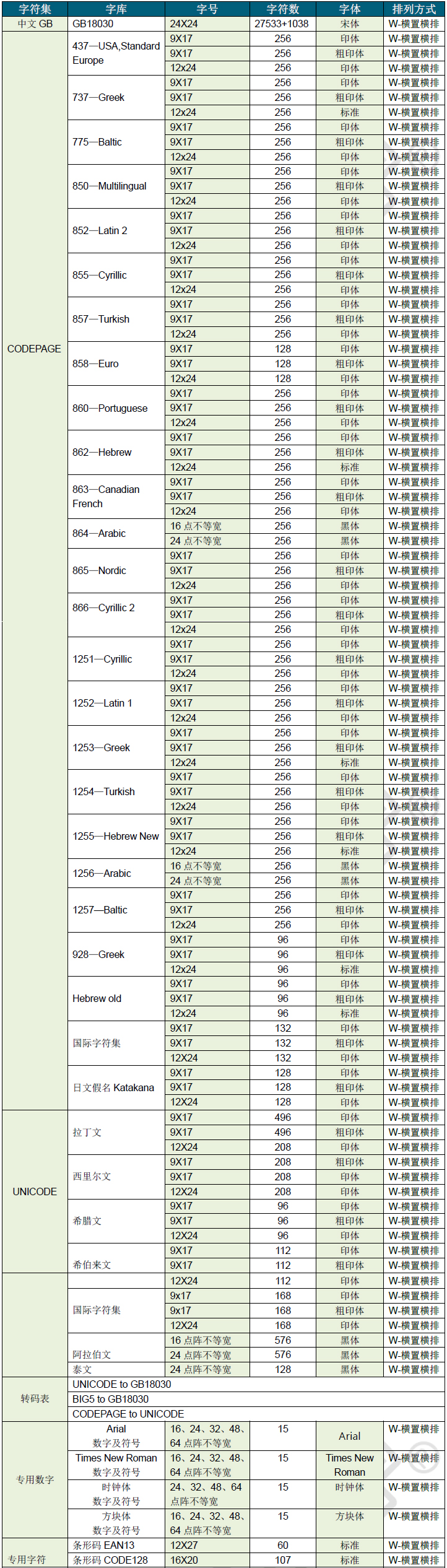 - 字符集:GB18030/UNICODE/CODEPAGE