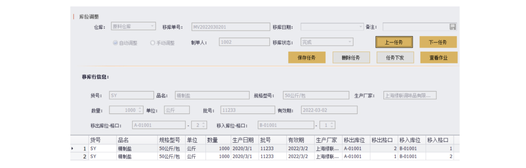 1、作业由订单或波次生成并与之对应 2、作业单内置WCS控制模块,直接下发任务到自动化设备执行并接收反馈 3、详细记录每行作业任务的下发时间,反馈时间和执行情况 4、也可直接监控设备运行情况 5、当自动化设备脱机时,支持手工确认 |